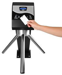 Também utilizada para definir espaços de acesso restrito, a catraca de acesso biométrico trabalha com softwares tecnológicos que realizam a leitura de impressões digitais para a identificação de usuários.